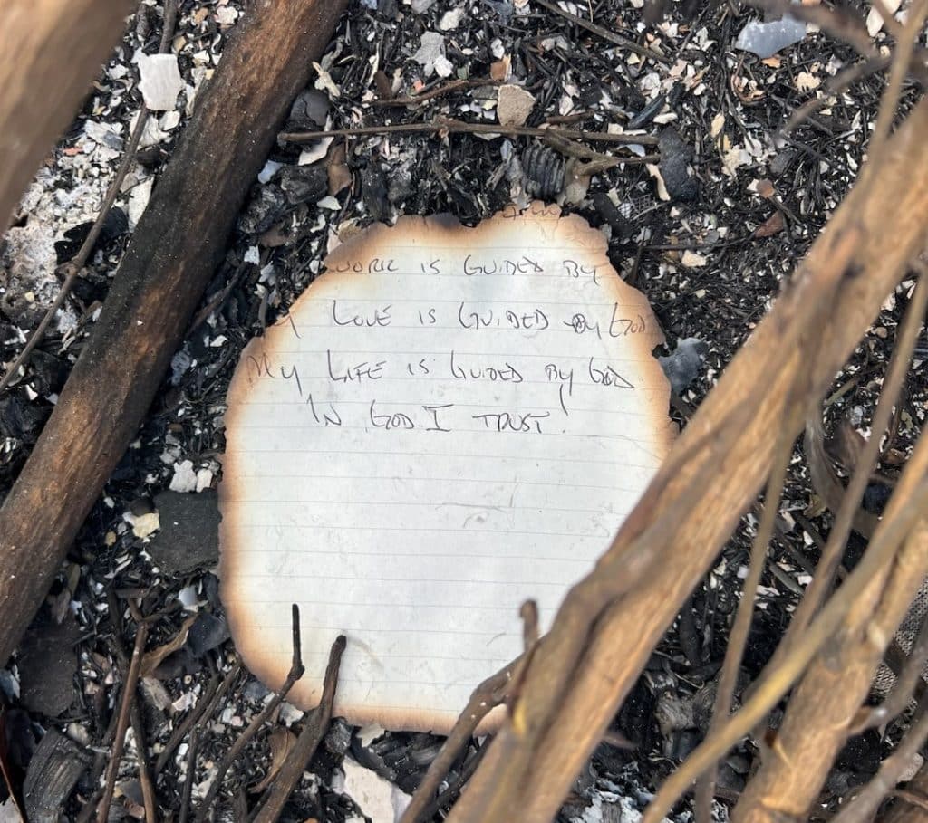 On August 10, Eric returned to where his home had once been. There, underneath the rubbles, were the remnants of an entry from his journal.